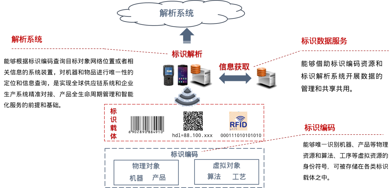 工业互联网标识解析体系是工业互联网网络体系的重要组成部分,是支撑工业互联网互联互通的神经枢纽,其作用就类似于互联网领域的域名解析系统(DNS)。通过标识唯一识别机器、产品等物理资源和算法、工序等虚拟资源的身份,建立解析系统来根据标识编码查询目标对象网络位置或者相关信息的系统装置,从而对机器和物品进行唯一性的定位和信息查询,是实现全球供应链系统和企业生产系统的精准对接、产品全生命周期管理和智能化服务的前提和基础。通过提供不同产品的独特标识信息,借助通用统一的标识解析体系,工业产品信息能够在这条工业互联网的“神经通路”上实现跨企业、跨行业、跨地域的共享和使用。企业得以实现全球供应链系统和生产系统的精准对接,实现智能化生产、个性化定制、重要产品追溯和产品全生命周期管理。