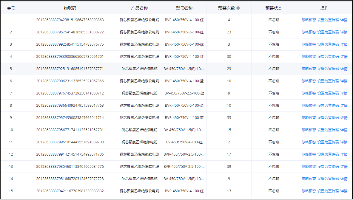 经销商扫码报废统计:通过物联码扫码报废功能,可以统计出经销商产品销售数据和库存情况,扫码报废回收线盘奖励机制,可刺激经销商销售的积极性,实现双赢。